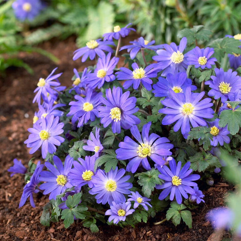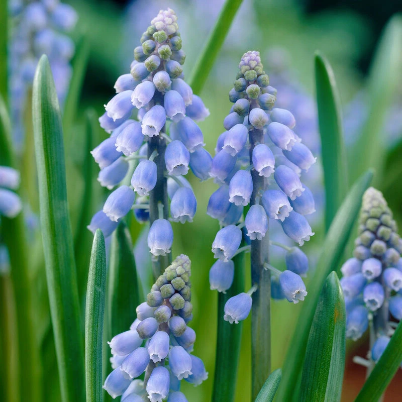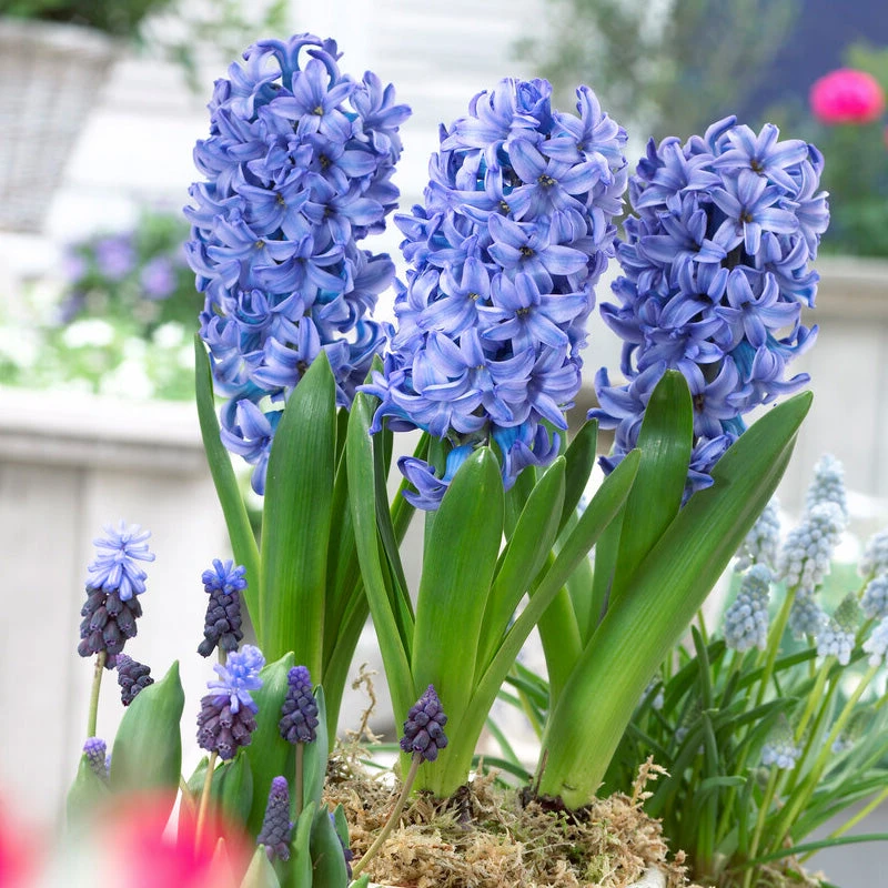 Collection of the following bulbs to create a mass of blue blooms: Muscari armeniacum, Anemone Blue Shades, Hyacinthus Delft Blue, Allium caeruleum